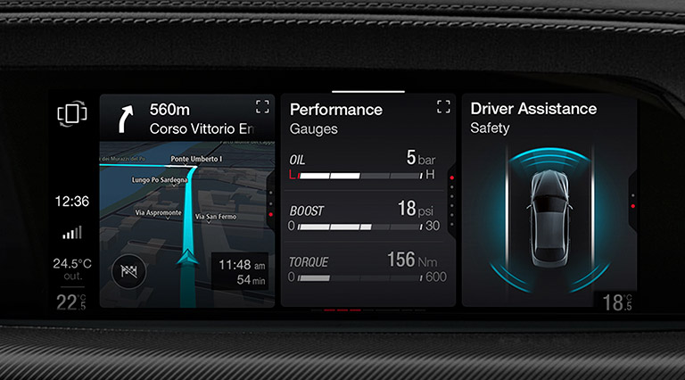 情熱的なドライブをサポートする最先端の先進運転支援システムを搭載。優れたコントロール性能と卓越したドライビングプレジャーを提供するため、車両周辺をインテリジェントに監視します。